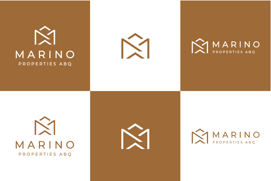 This client loves the Albuquerque landscape and wanted to reflect that, so we decided to use copper, a reddish-brown color that is characteristic of desert area architecture. Also, the logo needed to have the “M (Marino) as the main distinctive piece of the brand.